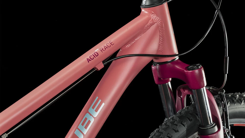 Der Rahmen des Acid 240 besteht aus denselben hitzebehandelten 6061er-Aluminiumrohrsätzen wie der ihrer Erwachsenen-Mountainbikes und ist demnach genauso robust und stabil. CUBE hat seine Proportionen und das Gewicht aber auf die Anforderungen von Kindern abgestimmt. Zudem können Schutzbleche montiert werden – und ein Flaschenhalter, damit die Kids unterwegs immer ausreichend mit Flüssigkeit versorgt sind. Dank dem guten, auf hohen Fahrspaß ausgelegten Handling tanken die Youngsters jede Menge Selbstvertrauen. Und weil sich der eine oder andere Unfall kaum vermeiden lässt, wurde sich für ein einfach austauschbares Schaltauge entschieden, was dir aufwendige Reparaturen nach einem Sturz oder Aufprall erspart.