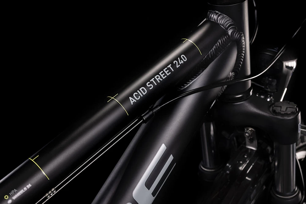 Hier kommt das CUBE Acid 240 Street, ein straßentaugliches Kids-Bike, mit dem der Schulweg ebenso viel Spaß macht wie die Trails beim Wochenenausflug mit der Familie. Sehr zur Freude der Eltern vermitteln das dynamobetriebene Lichtsystem, der Seitenständer, der Gepäckträger und natürlich die leichten, leistungsstarken und einfach zu bedienenden Bremsen mit Power Modulator am Vorderrad Sicherheit und Komfort.