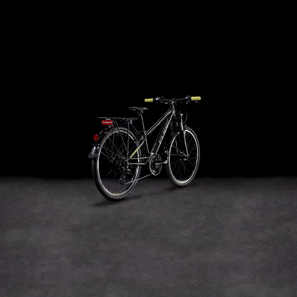 Der Rahmen des Acid 240 Allroad besteht aus denselben hitzebehandelten 6061er-Aluminiumrohrsätzen wie der ihrer Erwachsenen-Mountainbikes und ist demnach genauso robust und stabil. CUBE hat seine Proportionen und das Gewicht aber auf die Anforderungen von Kindern abgestimmt. Außerdem mit an Bord ist ein Zubehörset: Schutzbleche, Lichtanlage und Seitenständer. So sind die Youngsters für alle Abenteuer gerüstet. Dank dem guten, auf hohen Fahrspaß ausgelegten Handling tanken sie noch dazu jede Menge Selbstvertrauen. Und weil sich der eine oder andere Unfall kaum vermeiden lässt, hat CUBE sich für ein einfach austauschbares Schaltauge entschieden, was dir aufwendige Reparaturen nach einem Sturz oder Aufprall erspart.