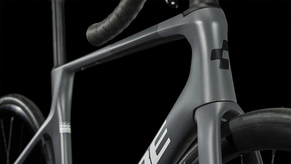Ab einer bestimmten Geschwindigkeit ist es nicht mehr am Fahrer, ob noch ein paar Millisekunden schneller drin sind, sondern am Bike. Deshalb hat CUBE sich bei der Entwicklung des Agree C:62 von ihren High-End-Rennrad- und Zeitfahr-Rahmen inspirieren lassen. Das Ergebnis ist ebenso aerodynamisch wie ästhetisch ansprechend – ein Allround-Chassis aus Carbon, das CUBE zugunsten von wenig Gesamtgewicht und hohem Fahrkomfort mit schlanken Sitzstreben und durchdacht geformten Rohrsätzen feinabgestimmt hat. Außerdem sind die Schalt- und Bremszüge semi-integriert, was das Handling optimiert und den Wartungsaufwand reduziert. Optional lässt sich eine Rahmenbox montieren, in der Energieriegel oder Werkzeug Platz finden, falls die Tour doch mal länger dauert als geplant.