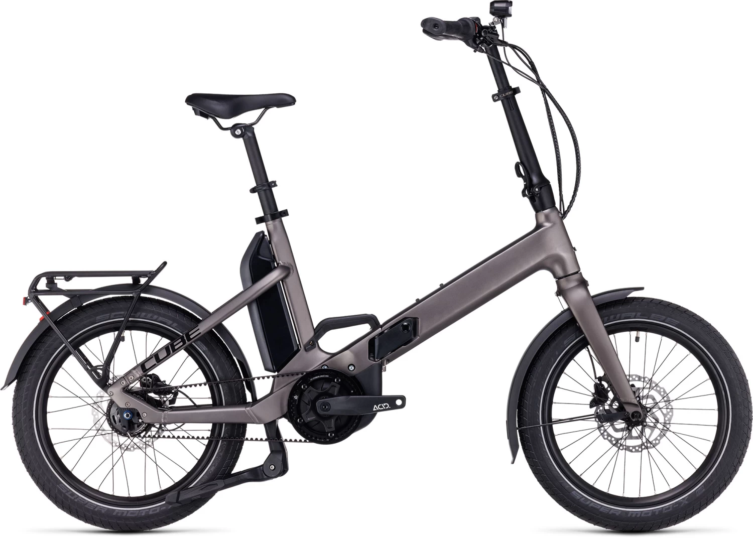 Neue Maßstäbe in puncto Flexiblität, Mobilität und Funktionalität setzt das neue faltbare E-Bike mit Bosch Antrieb: das Fold Hybrid 500. Dass es noch dazu genial aussieht, ist kein Zufall, denn wie so oft folgt hier die Form der Funktion. Dank einem cleveren Faltmechanismus und integrierten Tragegriff lässt sich das Rad auf platzsparende Maße zusammenklappen und effizient und einfach verstauen oder transportieren. Und dank einfacher Verstellmöglichkeiten am Sattel und Lenker kannst du es ganz leicht auf fast alle Körpergrößen anpassen. Doch damit nicht genug: CUBE hat auch an Schutzbleche, einen superstabilen Seitenständer und einen robusten Gepäckträger gedacht, der sich durch einen optionalen Front-Gepäckträger ergänzen lässt. Auch können Taschen und Körbe leicht und schnell mit innovativen Mechanismen am Bike befestigt werden. So ist immer alles dabei, was mit muss. Du wirst dich fragen, wie du je ohne diesen faltbaren Begleiter ausgekommen bist?