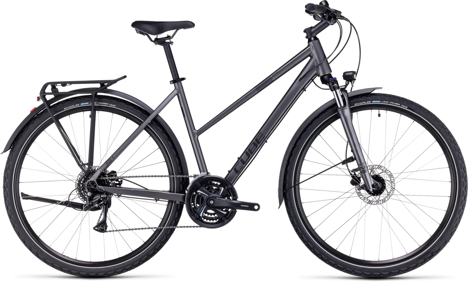 Beim Nature Allroad hat CUBE den für die Serie typischen Komfort und die hohe Vieleitigkeit mit zahlreichen praktischen Details und Features kombiniert. Das Ergebnis ist eine Bike, das schlichtweg alles mitmacht. Extralange Schutzbleche, ein verwindungssteifer Gepäckträger, ein Seitenständer und das dynamobetriebene Beleuchtungssystem liefern non-stop erstklassigen Support, egal ob in der City oder bei Touren über Land. Und dank der komfortablen Suntour Federgabel, der breit gefächerten 3×8-fach Shimano Schaltung und leistungsstarken hydraulischen Scheibenbremsen kommt man immer sicher und entspannt ans Ziel. Kurz gesagt: Dieses Bike fühlt sich auf allen Routen wie zu Hause!