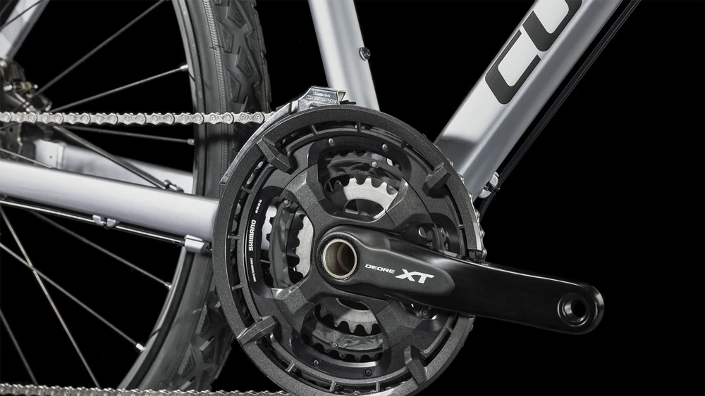 Keine Frage, hoher Fahrkomfort geht nur mit Federgabel, weshalb CUBE dem Nature EXC auch eine Luftfedergabel von Suntour verpasst hat. Sie lässt sich ganz einfach und ganz präzise auf die jeweils gewünschte Mischung aus Komfort und Kontrolle einstellen. Dazu wechselt die zuverlässige XT und Deore 3×10 Schaltung von Shimano leicht und geschmeidig von Gang zu Gang – so wird jede Route und jeder Anstieg zum Kinderspiel. Maximale Bremskraft ist das Spezialgebiet der einfach zu bedienenden hydraulischen Shimano Scheibenbremsen, die bei jedem Wetter kräftig zupacken und das Bike kontrolliert zum Stehen bringen. Jetzt braucht’s nur noch die perfekte nächste Route und los!