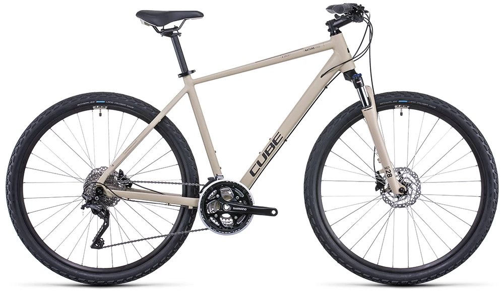 Wer mit seinem Bike gern abseits ausgetretener Pfade unterwegs ist, wird das Cube Nature Pro lieben. Ein Grund dafür ist die große übersetzungsbandbreite der leichtgängigen Shimano 3×10-Schaltung mit superzuverlässigem XT Schaltwerk am Hinterrad – da hat man per einfachem Klick für jeden Anstieg den richtigen Gang parat.