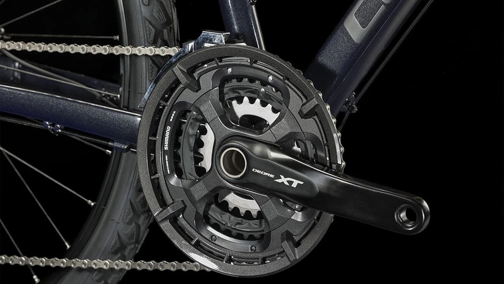 Pioniere und Entdecker haben mit dem CUBE Nature SLX den richtigen Komplizen für ihre Leidenschaft unter dem Sattel. Denn seine legendäre und superzuverlässige Shimano XT 3×10-Schaltung wechselt geschmeidig und präzise die Gänge und passt sich so jeder Situation auf Tour problemlos an. Diesen Performance-Anspruch erfüllen auch die dazu passenden hydraulischen XT Scheibenbremsen: maximale Bremsleistung, maximale Sicherheit, und das bei jedem Wetter. Die Suntour Luftfedergabel in Kombination mit 2.0 Zoll breiten Reifen steht für hohen Fahrkomfort, top Kontrolle und ein spritziges Fahrverhalten. Jetzt fehlt nur noch der Abenteurer, der aufsitzt und losradelt!
