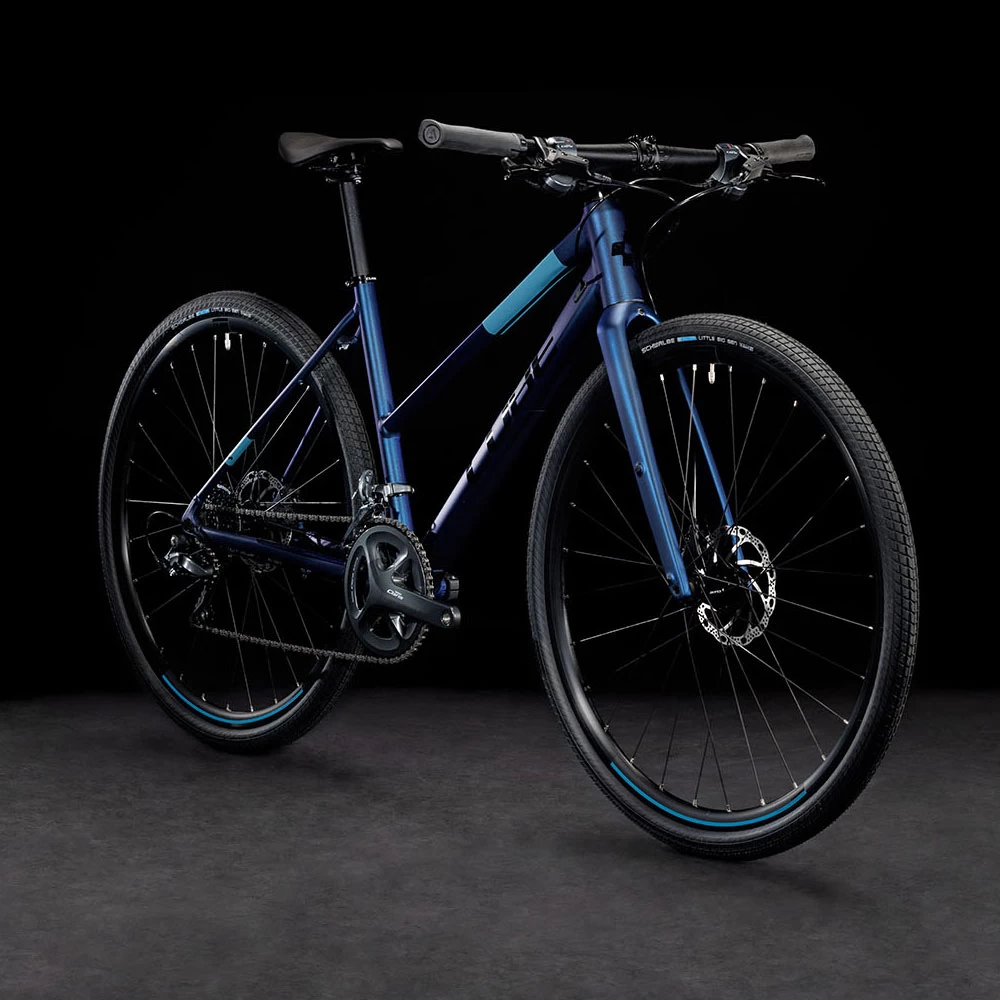 Man nehme die Racing-DNA CUBE’s Rennräder, kombiniere sie mit einem praktischen geraden Lenker und fertig ist das Nulane. Als Draufgabe hat CUBE diesem Bike leistungsstarke Flat Mount Scheibenbremsen von Tektro spendiert – der Inbegriff progressiver, sicherer Bremskraft, selbst bei widrigstem Wetter. Seine Shimano Claris 2×8-Gang Schaltung wechselt in jeder Situation zuverlässig und geschmeidig von Gang zu Gang. Und die leichte, komfortable Vollcarbongabel schluckt sämtliche Vibrationen von rauerem Asphalt weg wie nichts. Arbeitsweg, Training oder Entdeckertour – das Nulane ist für alles zu haben!