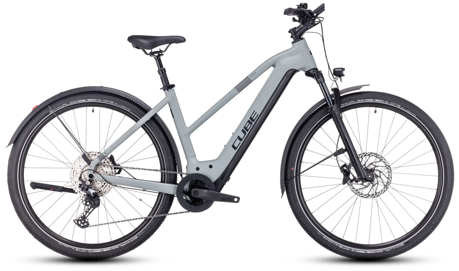 Den Nuride Hybrid 750 Allroad gibt es als Tiefeinsteiger, Trapezrahmen oder klassischen Herrenrahmen und jeweils in verschiedenen Größen, was bedeutet, dass jeder Entdecker die perfekte Passform für sich findet. Im Zentrum dieser brandneuen Konstruktion sitzt – sauber und unauffällig ins Design integriert – der 750 Wh starke Akku für maximale Reichweite. Außerdem hat CUBE zwei Ideen von ihren Mountainbikes aufgegriffen. Zum einen wurden die Schalt- und Bremszüge ins Innere verlegt, was den Wartungaufwand minimiert, zum anderen garantiert ein X12 Boost Hinterbau sicheres, zuverlässiges Handling. Fazit: alles, was man braucht, in einem clean designten Paket!