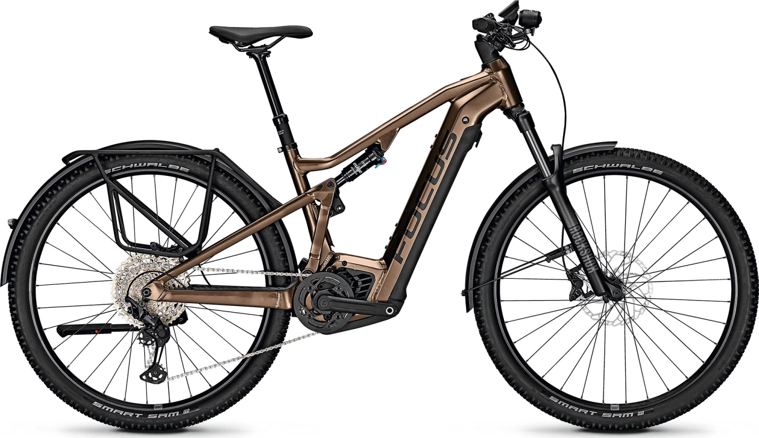 Das FOCUS THRON² EQP bietet maximale Vielseitigkeit. Mit 130 mm F.O.L.D. Federweg und 29”-Laufrädern ist das THRON² auf dem Trail zuhause und holt dank des Bosch Performance CX Smart (Gen.4) E-Antriebs mit 625 Wh noch mehr aus jeder Fahrt heraus. Mit Gepäckträger, Schutzblechen, Ständer und Licht eröffnet dir dieses astreine Tourenfully ganz neue Möglichkeiten von Bikepacking bis Pendeln.
