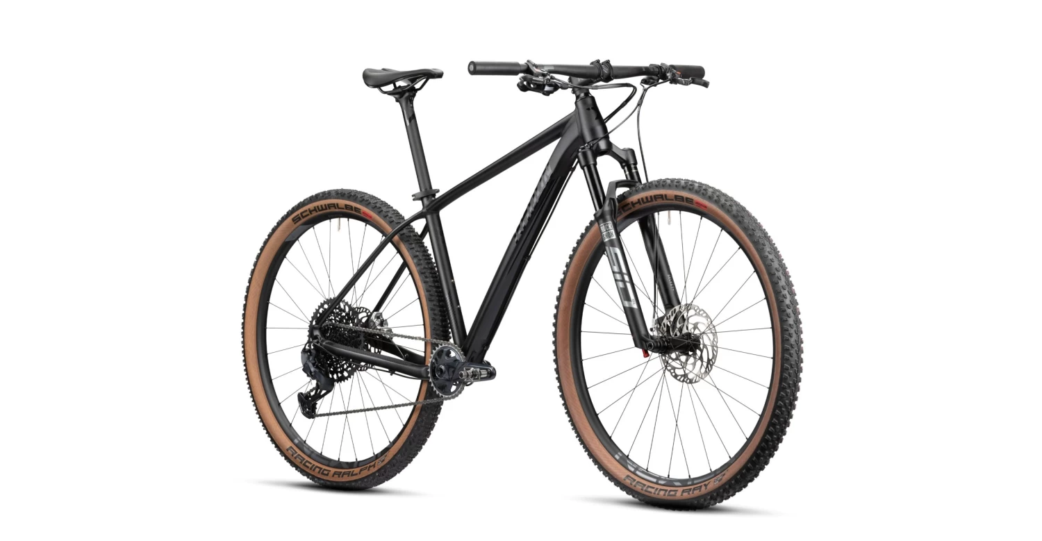 Wir verbauen einen 1×12 Antrieb und Laufräder im Boost-Standard. Bei der Selektion der verbauten Komponenten gab es nur ein Ziel: Gewichtsoptimierung! Aber nicht um jeden Preis – die nötige Haltbarkeit und Langlebigkeit ist definitiv gegeben. An der Front haben wir uns für RockShox‘ SID SL Luftfedergabel mit 100mm sportlich straffem Federweg entschieden, die Du für den nötigen Vortrieb blitzschnell per Remote vom Lenker aus blockieren kannst. Wir montieren die leichte wie robuste SRAM GX Eagle Schaltgruppe mit ihrer 10-52 Zähne umfassenden Kassette, die Dir wirklich in jedem Gelände den richitgen Gang bereitstellt, um deine nächste Attacke zu fahren. Magura’s MT8 Pro Scheibenbremse bietet ein exzellentes Gewicht und liefert Dir dennoch in jeder Situation ausreichend Bremspower. Beim Lenker und der Sattelstütze geht die Hatz nach einem niedrigen Gesamtgewicht weiter. Wir setzen auf Carbon Komponeten aus dem Hause Newmen. Die Laufrad-Reifen Kombination unterstützt den sportlichen Charakter dieses Hardtails, verleitet zu spritzigen Antritten, bietet messerscharfe Kontrolle und rundet die Gesamtkomposition perfekt ab. Wir verbauen den leichten und steifen Newmen Evolution SL X.A.25 Laufradsatz und montieren mit Racing Ray vorne und Racing Ralph hinten Schwalbe’s absolute Top Reifen im XC Segemnt. Die Reifen kommen mit superschneller ADDIX-Speed Gummimischung und Super Race Karkasse und machen durch ihre transparent-skin Seitenwand die Optik perfekt. JEALOUS AL 10.0 SL – Gemacht für Sieger!