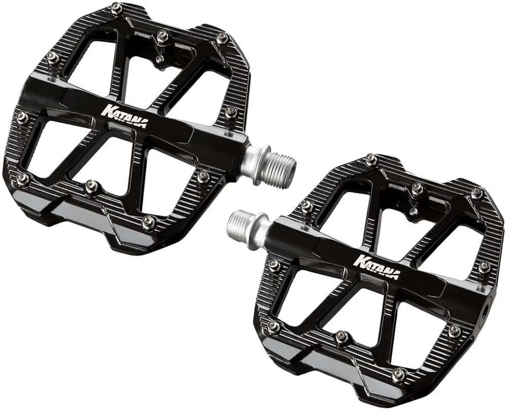 Die flachen Katana Blade Pedale bestehen aus einem robusten Magnesium-Korpus und sind mit jeweils zehn Evo-Pins für den nötigen Grip auf allen Trails versehen. Der Magnesium-Pedalkörper und die CNC-gefrästen Achsen sorgen in Verbindung mit hochwertigen Kugellagern für eine hohe Lebensdauer in jedem Einsatzbereich, selbst unter härtesten Bedingungen. Blade steht für flach, robust und schnell!