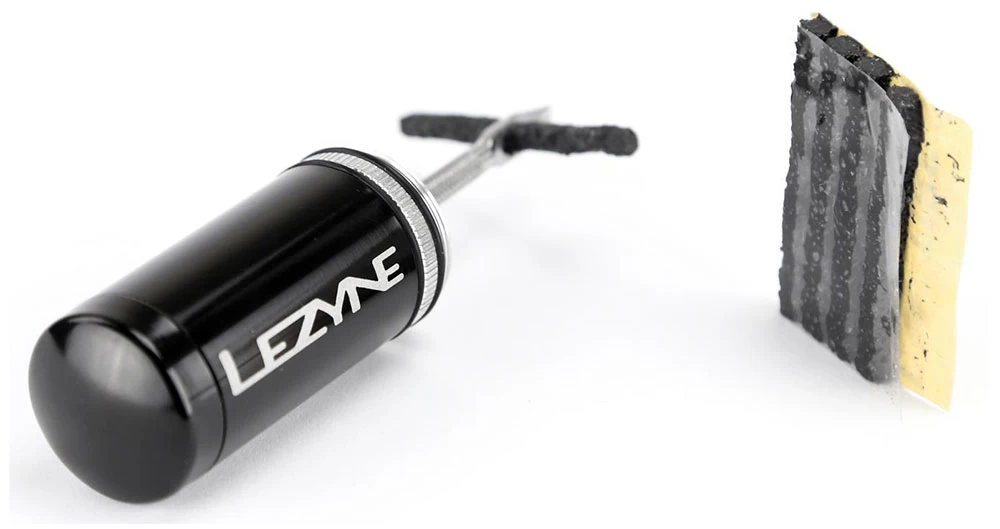 Das Lezyne Tubeless Repair Kit mit einem Aufbewahrungsrohr, das gleichzeitig als Griff dient ist die Lösung für platte Schlauchlos Reifen!