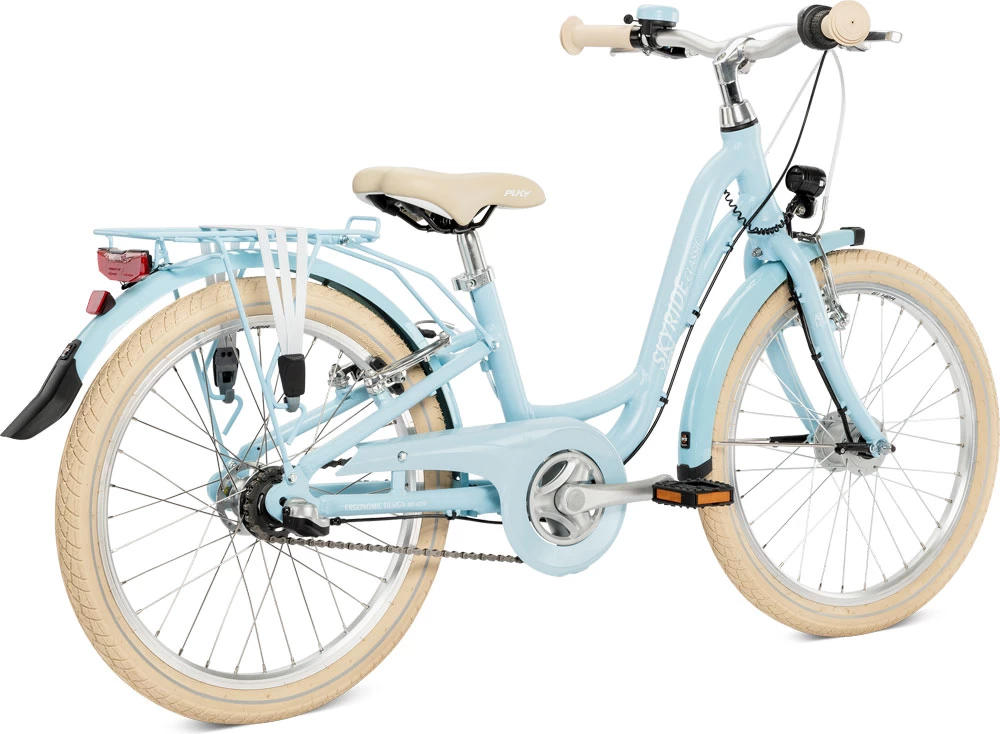 Das Skyride 20-3 Classic Mädchenfahrrad von Puky ist ein voll ausgestattetes Zweirad im klassischen Look für kleine Radfahrerinnen. Die leichten Aluminium-Komponenten, die vollständige STVZO-Tauglichkeit und ein Gepäckträger machen das SKYRIDE zum exzellenten Kinderfahrzeug.