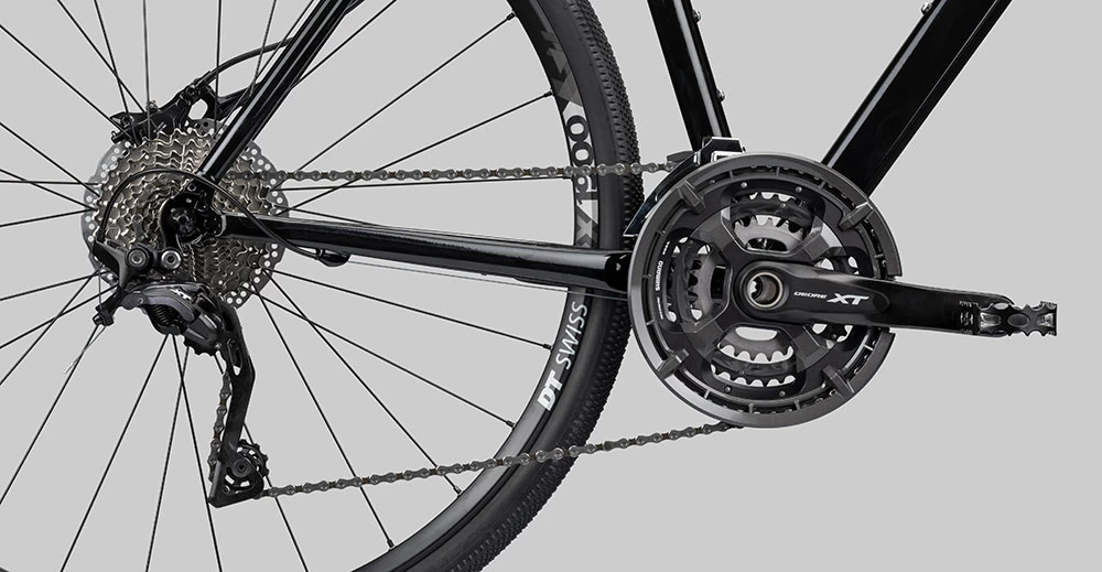 Die ausgezeichnete RockShox Paragon Gold an der Front gehört zu den besten Cross-Luftfedergabeln und atmet Unebenheiten und Schläge einfach so weg. Mit Shimano XT Komponenten macht man immer alles richtig, deshalb haben wir dem Rad gleich den kompletten Antrieb mit Kurbel, Umwerfer und Schaltwerk plus hydraulische XT BR-M8100 Bremse spendiert. Auf diese Gruppe kann man sich sowohl beim Beschleunigen als auch beim Abbremsen immer verlassen. Zusammen mit dem sportlichen Selle Italia X3 Sattel und den leicht rollenden Schwalbe G-One Pneus wird jede Ausfahrt zu einem sorgenfreien Genuss.