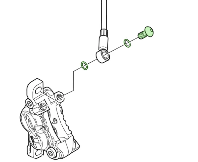 Die Shimano Banjo-Schraube mit 2 O-Ringen zur Befestigung der Bremsleitung am Bremssattel.