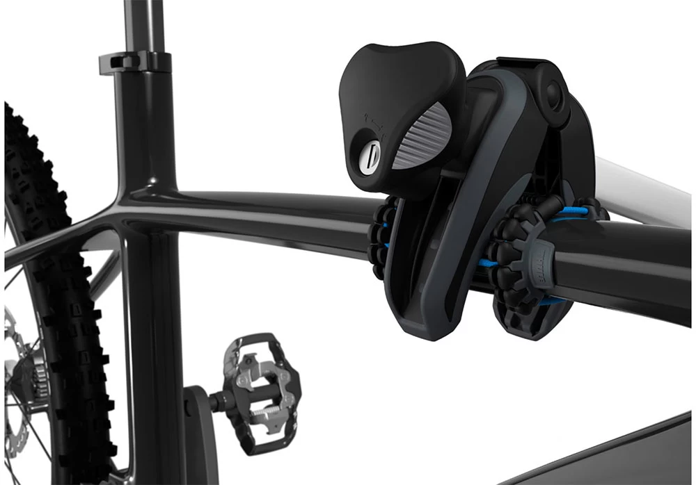 Der Thule Carbon Rahmenschutz verteilt den Fixierungsdruck über eine große Fläche, um das Risiko einer Rahmenbeschädigung zu vermeiden.