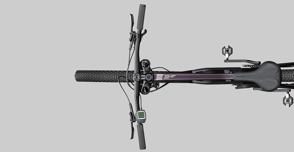 Im Gegensatz zu der geschwungenen Form des Oberrohrs bei den Rahmengrößen 17“ und 19“ hat die kleinste Größe des ZR Lady Hybrid ein gerade abfallendes Oberrohr. So wird bei der Rahmengröße mit 15“ neben der erhöhten Steifigkeit und der leichteren Entnahme des Akkus auch ein bequemerer Einstieg ermöglicht.